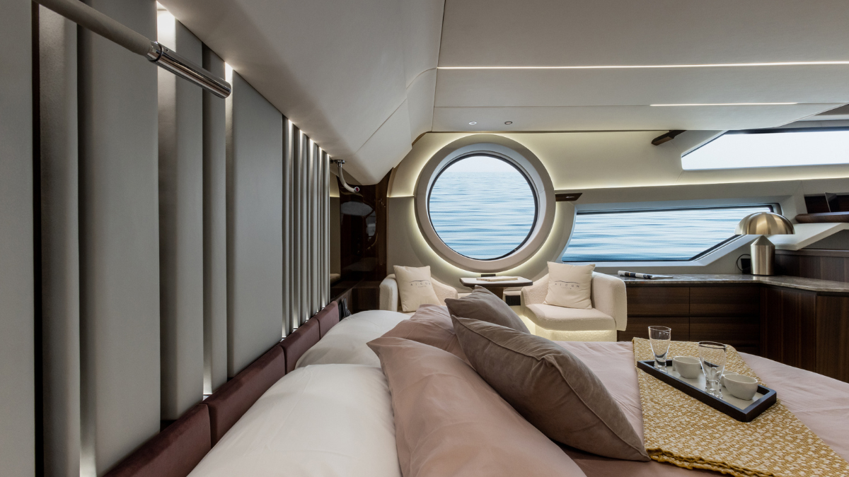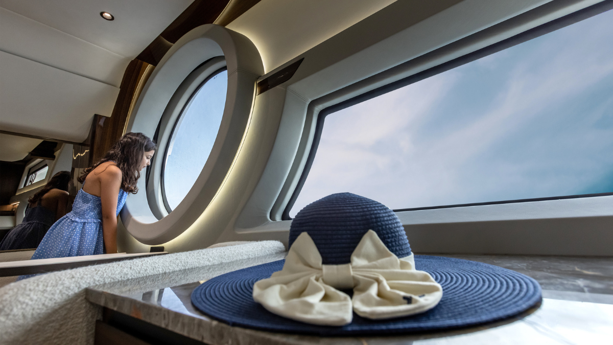 In addition, the iconic AICON circular hull window has been expanded to 1.5 meters (4’6″) providing breathtaking views and experiences, bringing the ocean and great outdoors to you while relaxing in luxury.