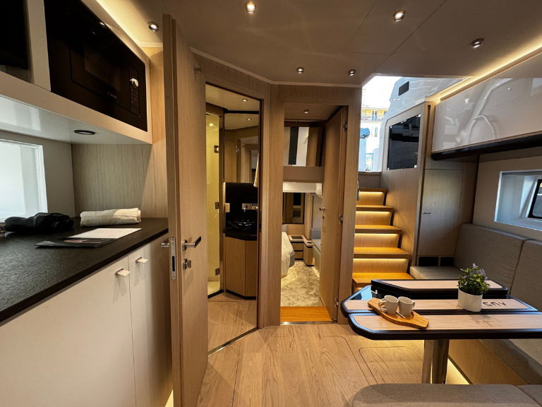 The result is a sports cruiser that is structured, performance-driven, and built with a clear focus on how it lives on the water.