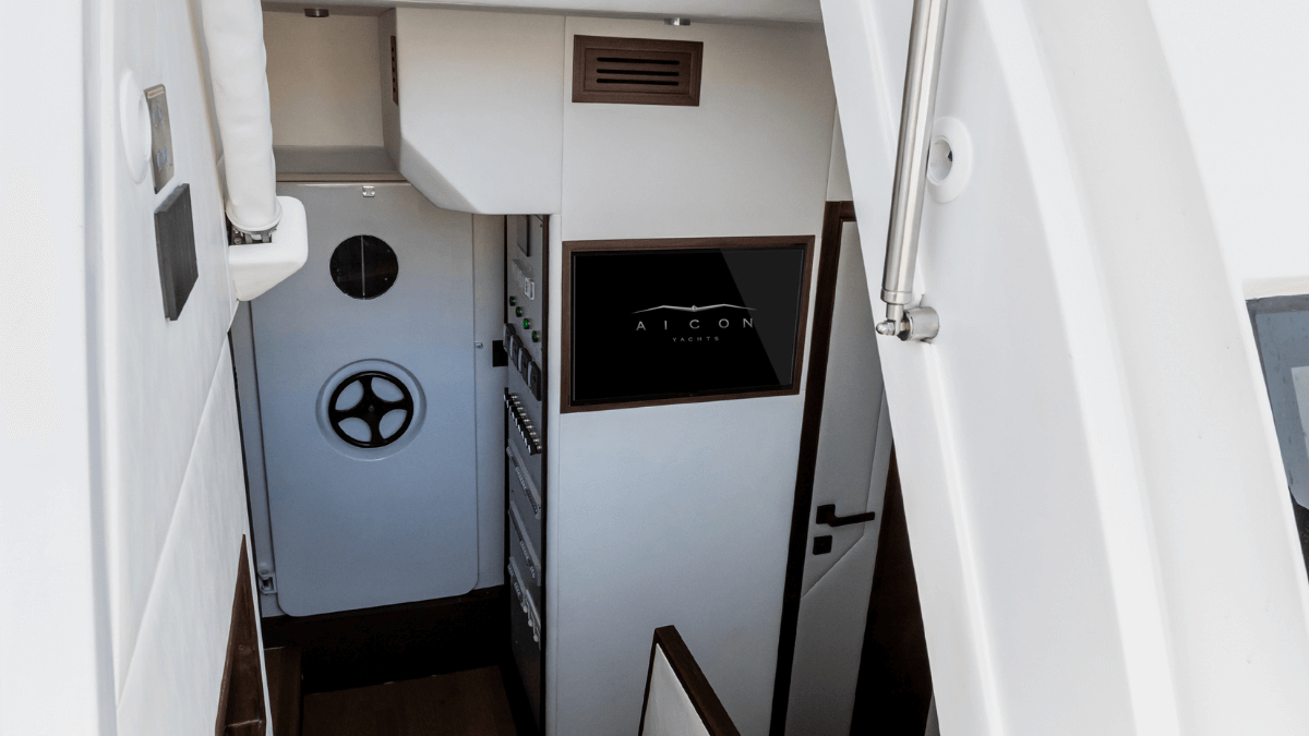 Aicon Yachts has introduced several groundbreaking features in the Vivere 66′. Notably, the yacht features a skylight on the flybridge, allowing natural light to illuminate the salon below, creating an open and airy ambiance. Such innovations highlight Aicon’s commitment to enhancing the onboard experience through thoughtful design elements.